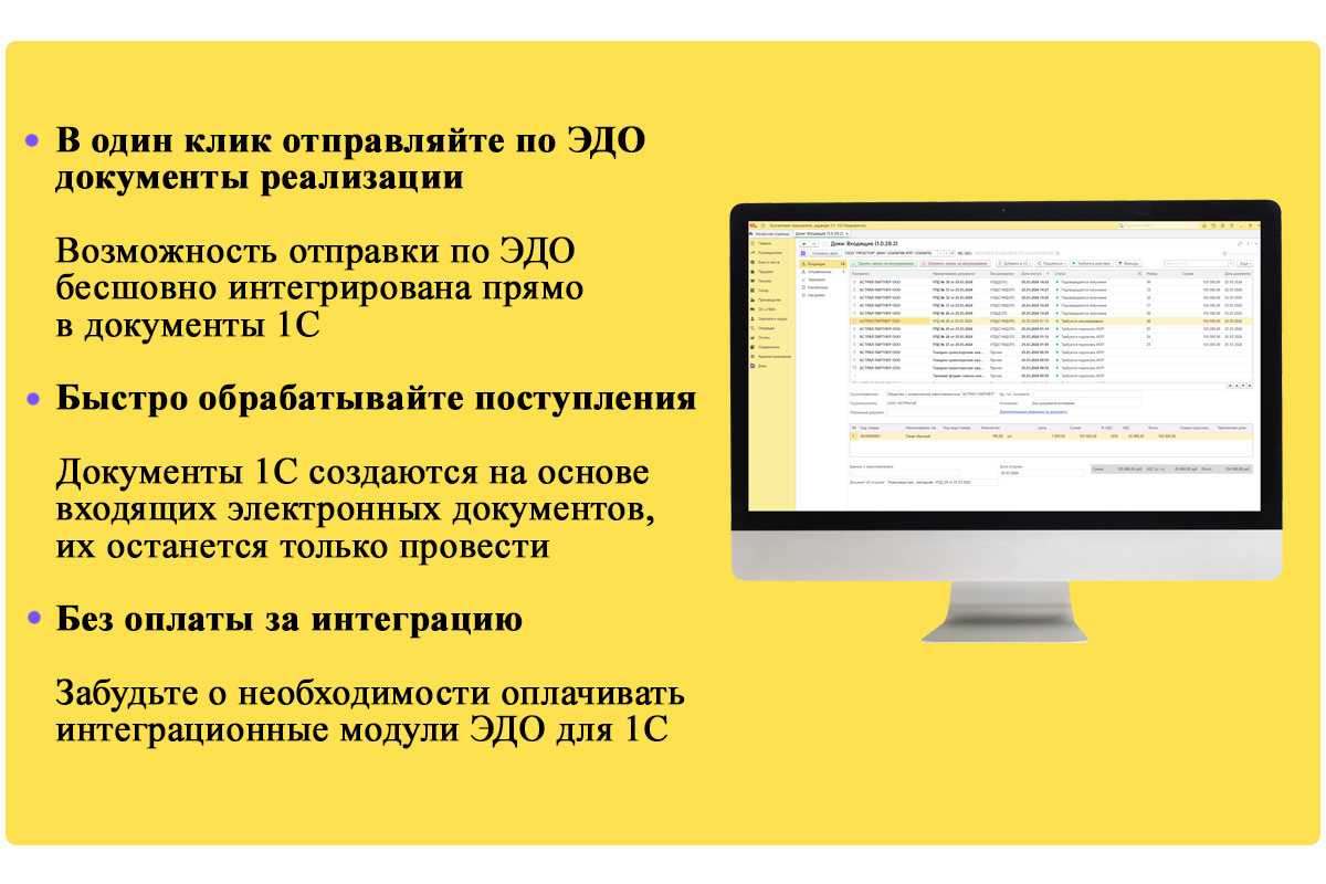 Больше не нужно часами обрабатывать поступления. Документы учета создаются на основе входящих электронных документов — их останется только провести