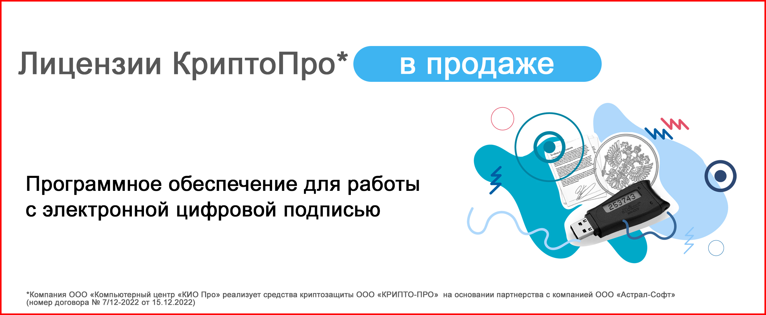 *Компания ООО «Компьютерный центр «КИО Про» реализует средства криптозащиты ООО «КРИПТО-ПРО» на основании партнерства с компанией ООО «Астрал-Софт» (номер договора № 7/12-2022 от 15.12.2022)